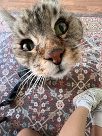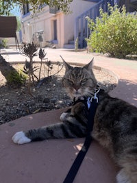 i tried to talk her on walks but she actually hated it so bad. She’s literally looking at me with so much anger in this but she so cute aweeeee on her liddo leash