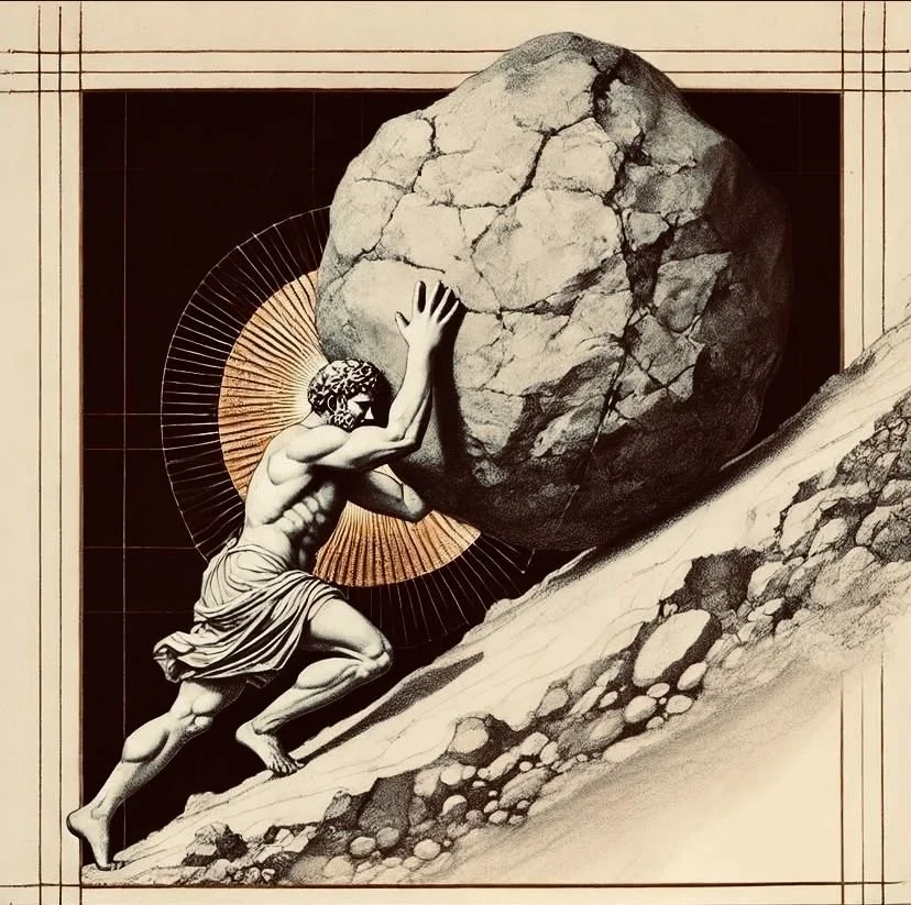 The title of the book, The Myth of Sisyphus, is exactly that, a myth. Sisyphus was condemned by the gods to push a boulder up a hill for all eternity only for its weight to pull it back down as he's almost at the top. It's said he was condemned to do this because he had stolen from the gods. Ægina is the daughter of Æsophus, she was taken by Jupiter leading her father to utter shock. Æsophus took his concern to Sisyphus, who was already aware of the situation. He offered to explain to Æsophus what he knew only if he had given water to the Citadel of Corinth, this is the act that sent him to the underworld. When being sent down, Sisyphus had wanted to test the love his wife held for him, and asked her to cast his body in the public square, but he awoke in the underworld. Asking for Pluto's permission, he returns to earth to rebuke his wife of her lack of human love, but when faced with the natural beauty of the earth he no longer wished to return. He lived some years on a gulf by the ocean until Mercury seized him back to the underworld, right back to his rock.